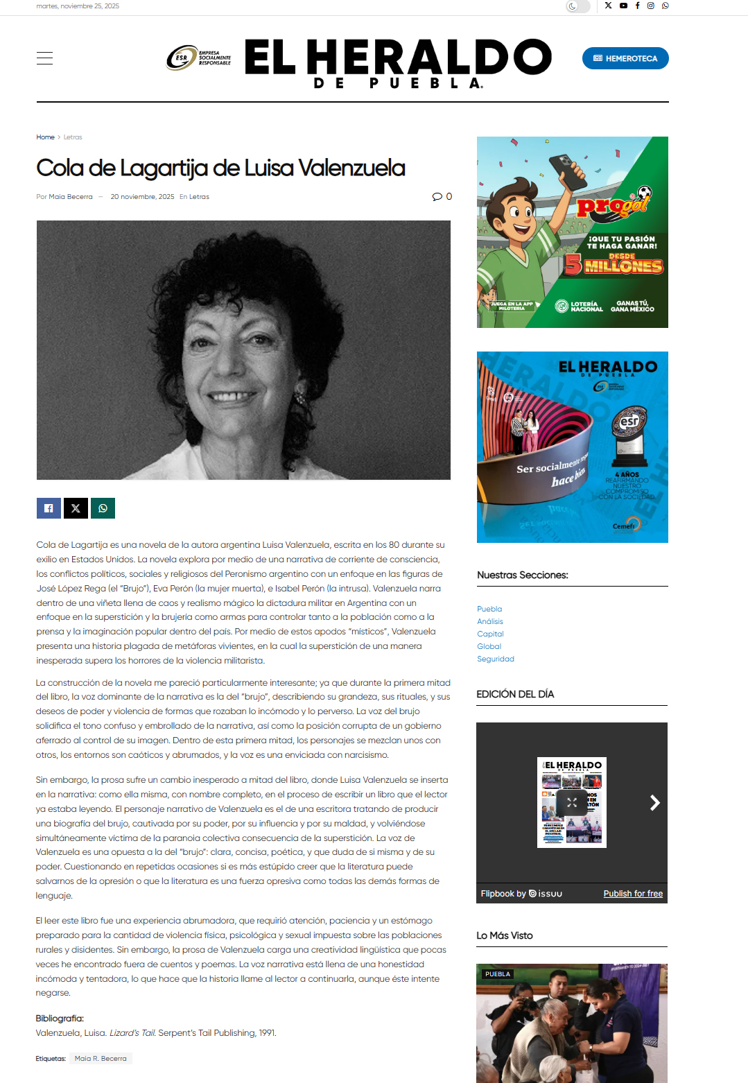 El leer este libro fue una experiencia abrumadora, que requirió atención, paciencia y un estómago preparado para la cantidad de violencia física, psicológica y sexual impuesta sobre las poblaciones rurales y disidentes. Sin embargo, la prosa de Valenzuela carga una creatividad lingüística que pocas veces he encontrado fuera de cuentos y poemas. La voz narrativa está llena de una honestidad incómoda y tentadora, lo que hace que la historia llame al lector a continuarla, aunque éste intente negarse.