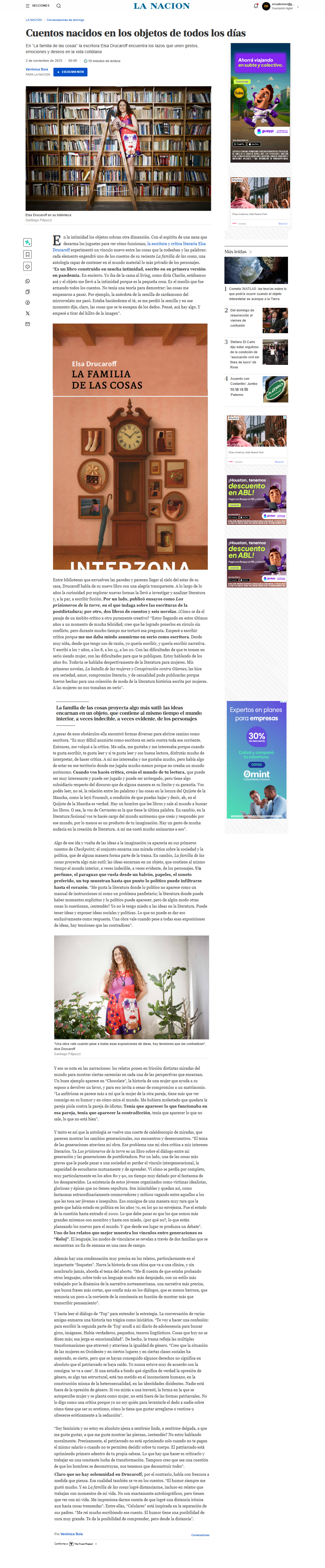 n la intimidad los objetos cobran otra dimensión. Con el espíritu de una nena que desarma los juguetes para ver cómo funcionan, la escritora y crítica literaria Elsa Drucaroff experimentó un vínculo nuevo entre las cosas que la rodeaban y las palabras: cada elemento engendró uno de los cuentos de su reciente La familia de las cosas, una antología capaz de contener en el mundo material lo más privado de los personajes. “Es un libro construido en mucha intimidad, escrito en su primera versión en pandemia. En encierro. Yo iba de la cama al living, como diría Charlie, estábamos acá y el objeto me llevó a la intimidad porque es la pequeña cosa. Es el meollo que fue armando todos los cuentos. No tenía una teoría para demostrar: las cosas me empezaron a pasar. Por ejemplo, la anécdota de la semilla de cardamomo del microrrelato me pasó. Estaba haciéndome el té, se me perdió la semilla y en ese momento dije, claro, las cosas que se te escapan de los dedos. Pensé, acá hay algo. Y empecé a tirar del hilito de la imagen”.