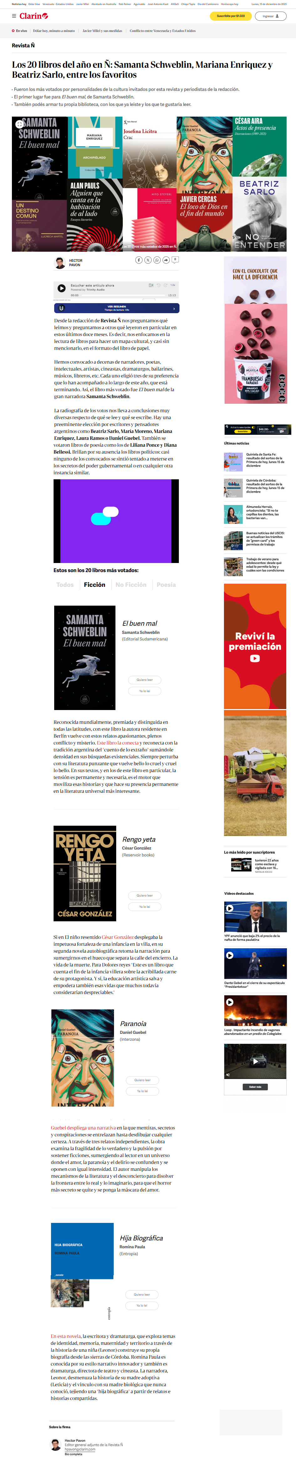 Desde la redacción de Revista Ñ nos preguntamos qué leímos y preguntamos a otros qué leyeron en particular en estos últimos doce meses. Es decir, nos enfocamos en la lectura de libros para hacer un mapa cultural, y casi sin mencionarlo, en el formato del libro de papel.