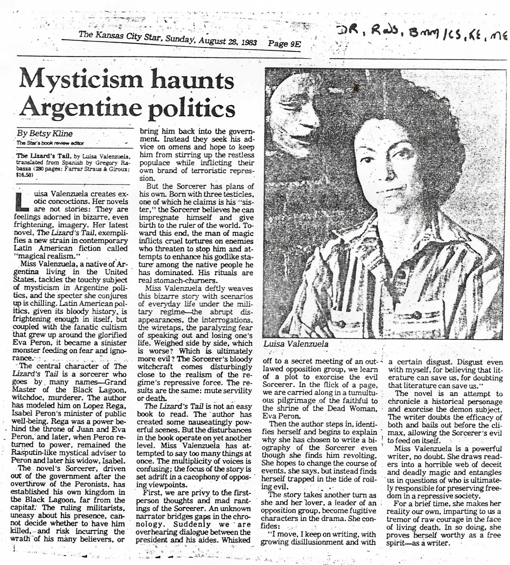 The Lizard´s Tail, by Luisa Valenzuela translated from Spanish by Gregory Rabassa