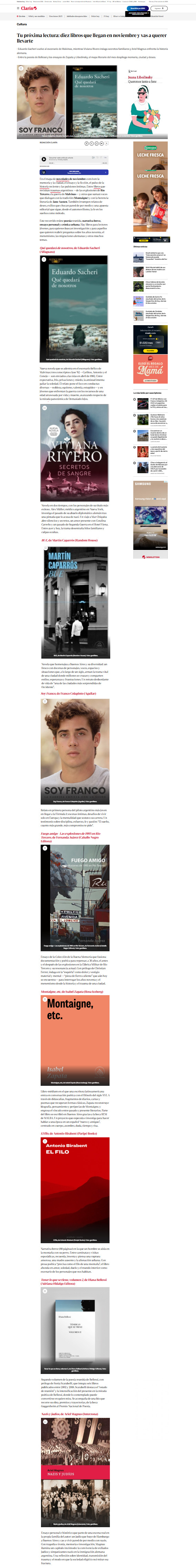 En el mapa de novedades de noviembre conviven la memoria y la ciudad, el ensayo y la ficción, el pulso de la historia reciente y las pulsiones íntimas. Entre libros que revisitan traumas argentinos —de las explosiones de Río Tercero a la guerra de Malvinas— y otros que suman voces que dialogan con la tradición (Montaigne) y con la herencia literaria de Jane Austen. También irrumpen relatos de deseo, exilios que chocan pared de por medio y una apuesta editorial que sigue, desde el automovilismo, la fe en los sueños como método.
